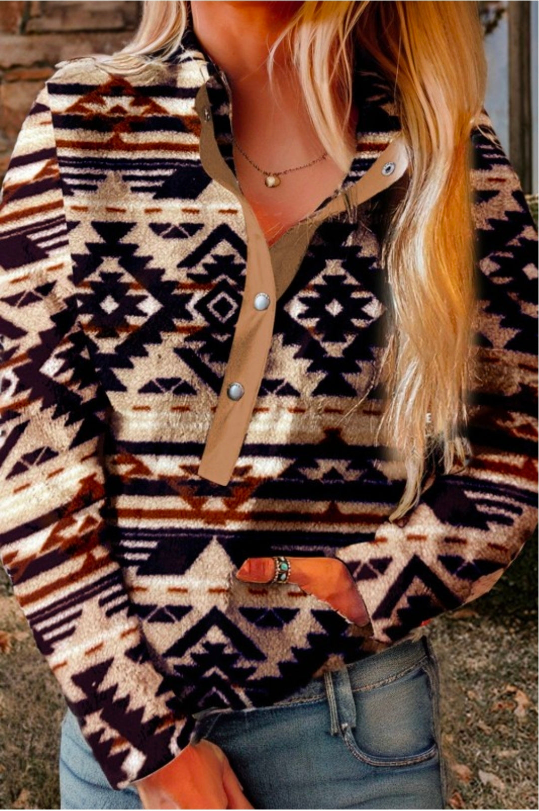 Beige western Aztec Sherman pullover with pockets